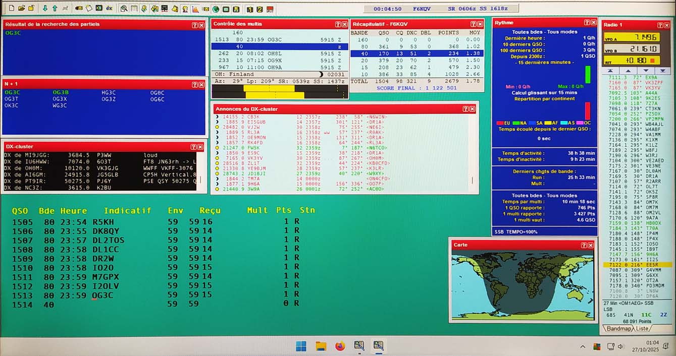 Concernant l’utilisation du cluster, rappelons que le CQ WW l’autorise dans la catégorie où nous avons concouru :