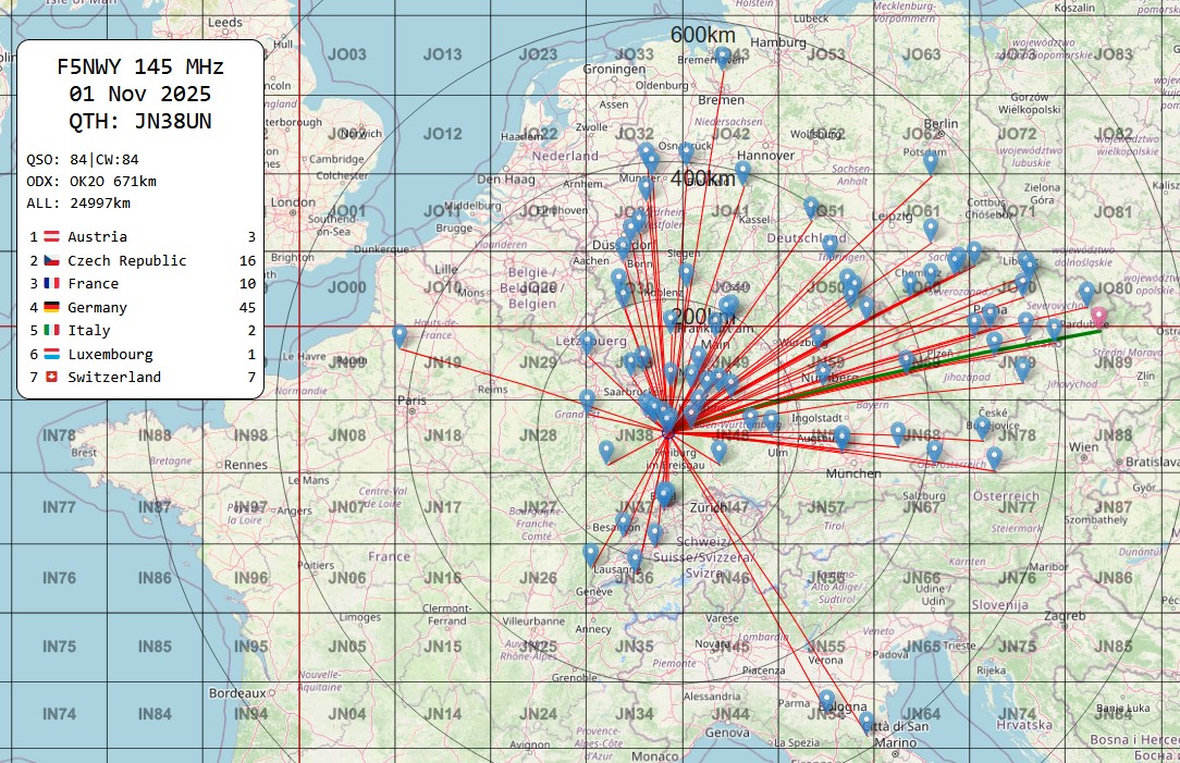 Meilleure distance: OK1DEZ (JN89IW) à 672 km