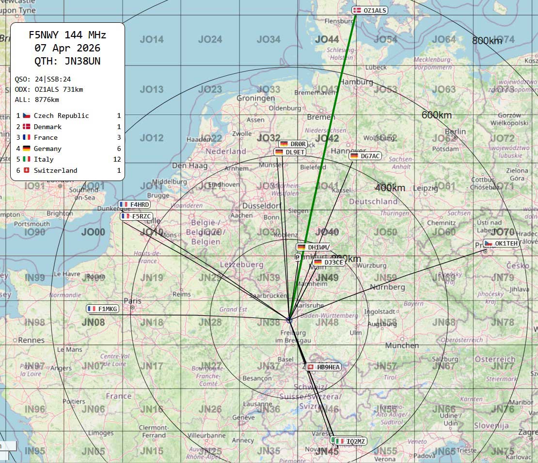 Meilleure distance: DK6JU (JO33WQ) à 571 km