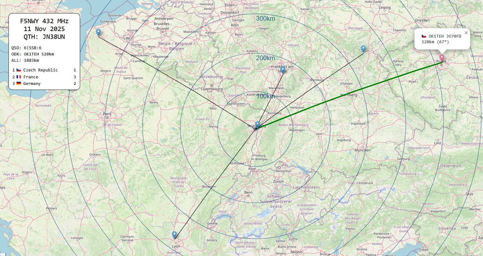 Meilleure distance: OK1TEH (JO70FD) à 521 km
