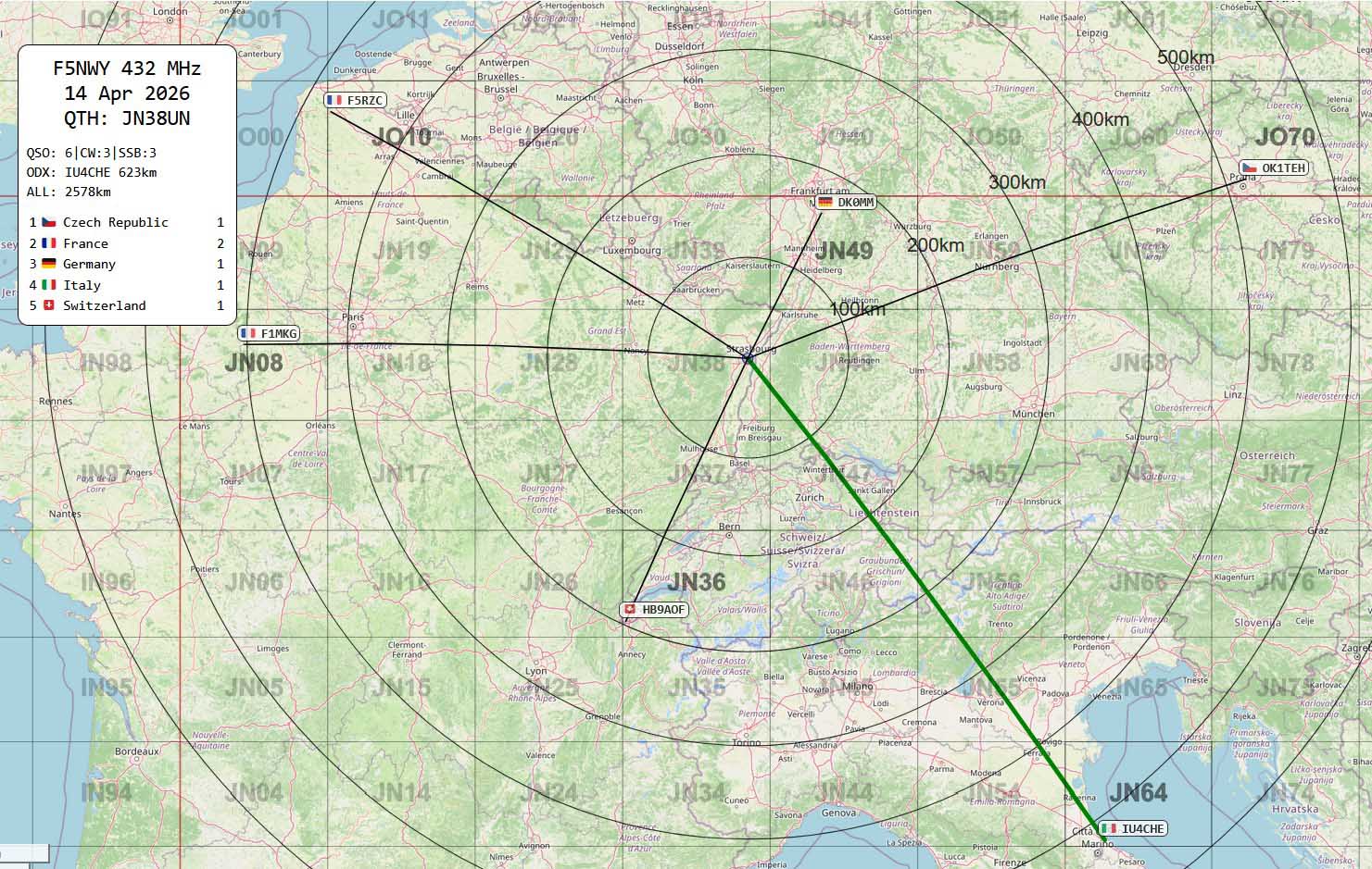 Meilleure distance: DK6JU (JO33WQ) à 571 km